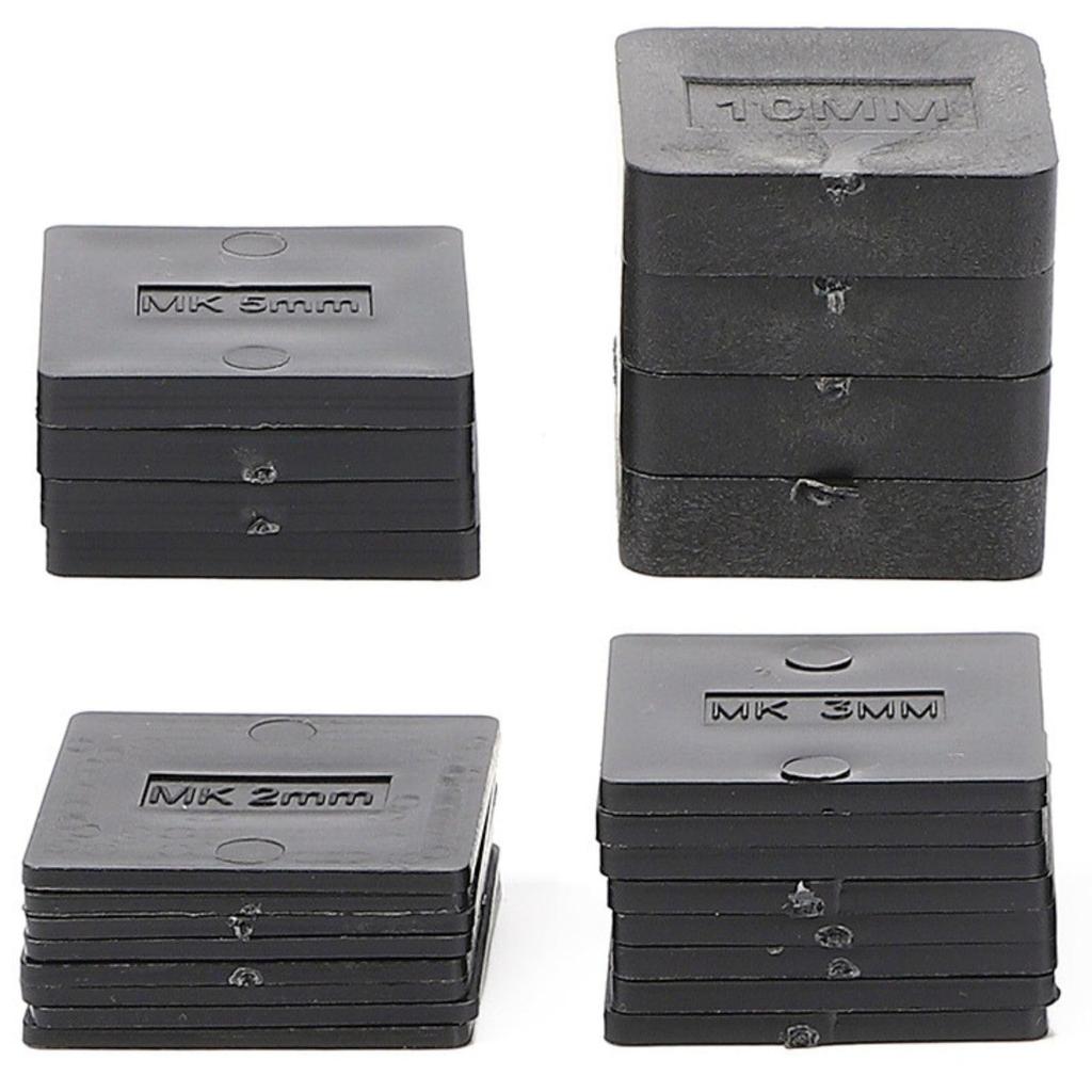 Включает 24 штуки толщиной 2 мм x 8 шт., 3 мм x 8 шт., 5 мм x 4 шт., 10 мм x 4 шт.. Размеры 40 мм и 66 мм квадрат, маленький дизайн. Материал изготовлен из легкого высокопрочного полипропилена