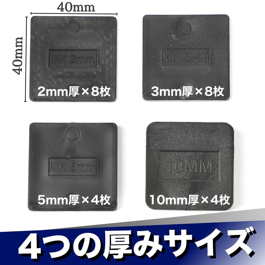 Набор из 24 черных выравнивающих прокладок, включает 4 типа толщины: 0.08, 0.12, 0.24, 0.41 дюйма (2, 3, 5, 10Маленький и простой в использовании, квадратный размер 1,6 дюйма (40 мм) и 2,6 дюйма (66 мм) и идеально подходит для строительных площадок и DIY-проектов