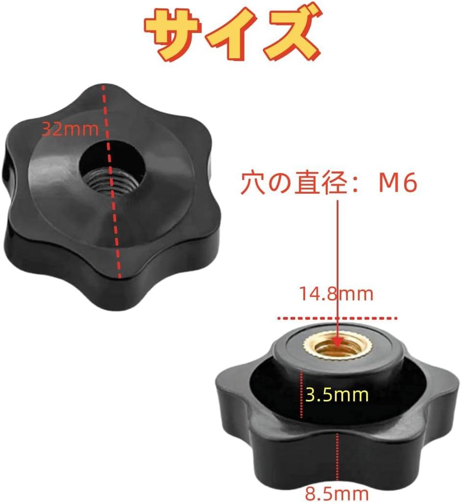 Knobster Knob Nut, Star Knob, Handle, Knob Bolt, Change Knob, Knob Bolt, Set of 12 (Through Type, M6)
