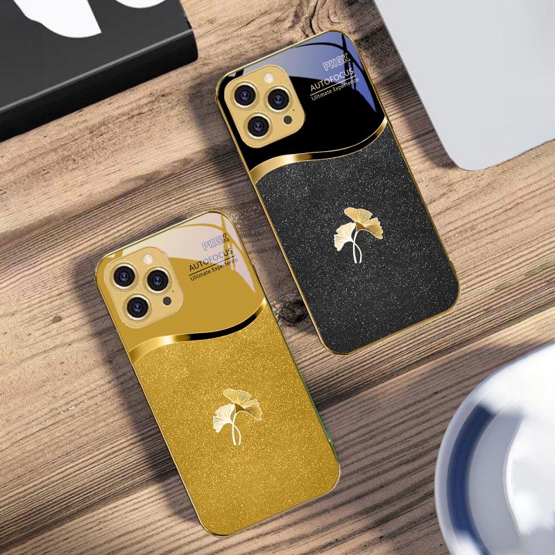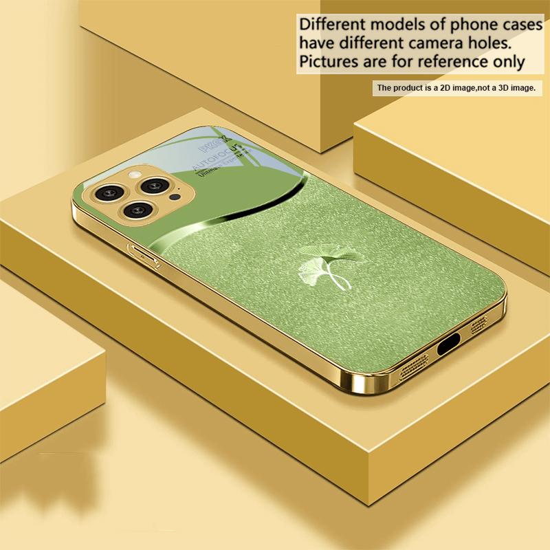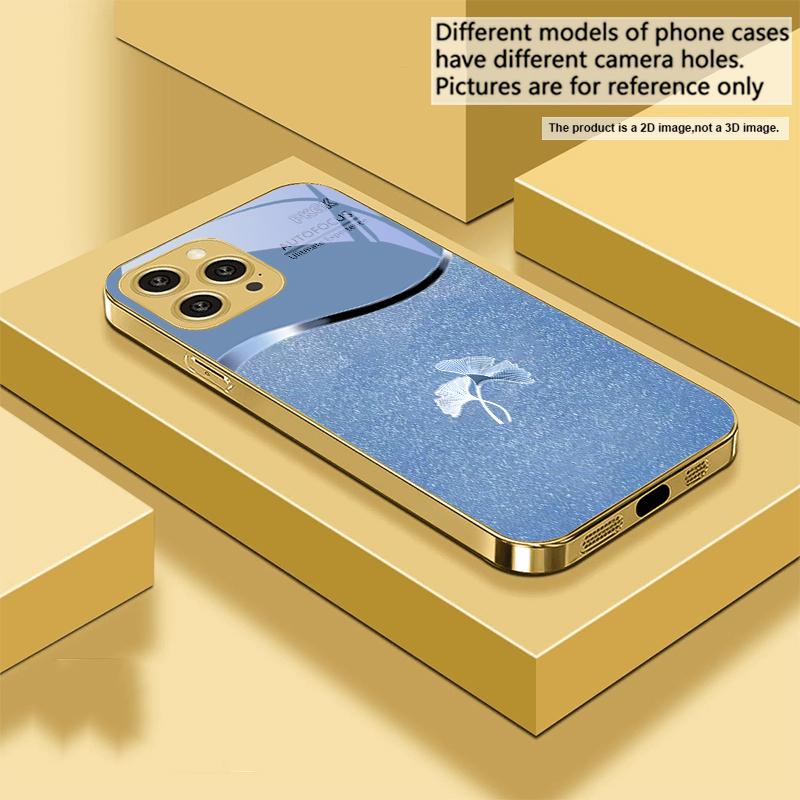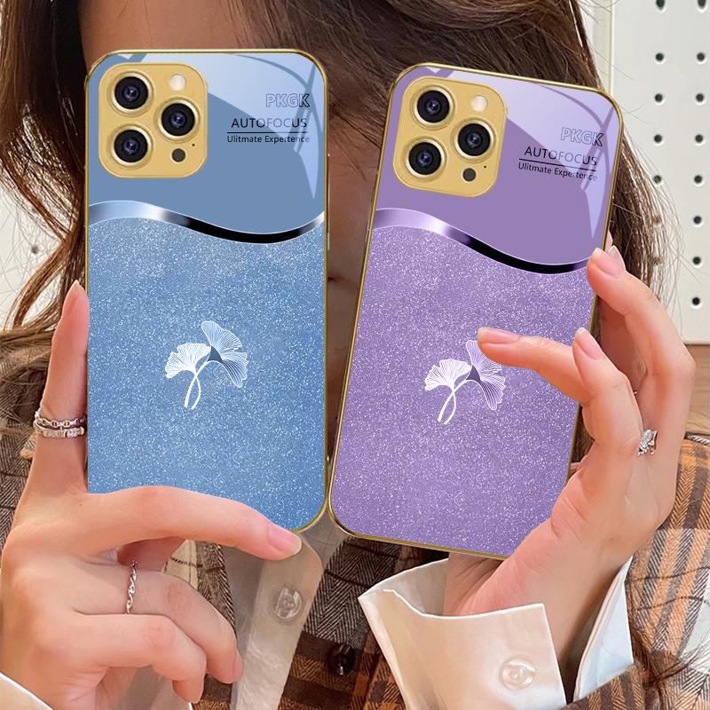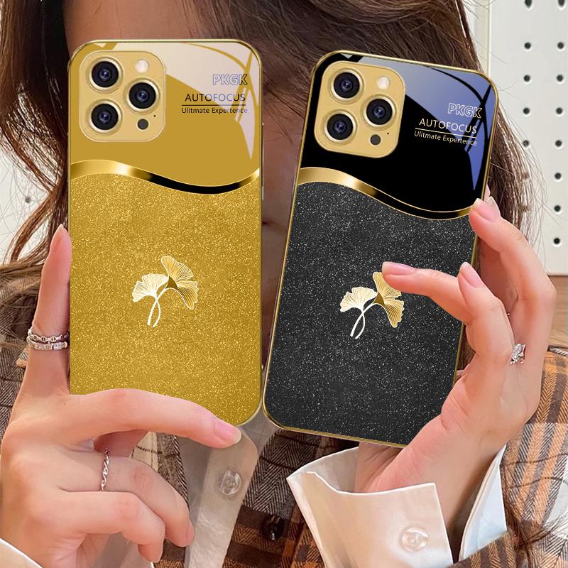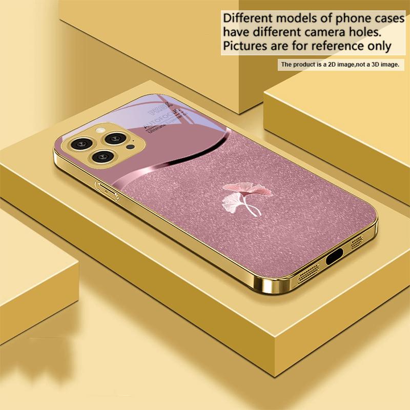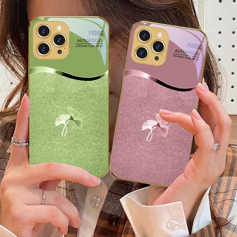 Розовый градиент гинкго Для iPhone 16 16Pro Max 15 P ro 14 13 Plus 12 Mini 11Pro Max XS Max XR Золотой чехол для телефона из закаленного стекла