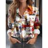 Женская Модная Блузка с Цветочными Блоками и Пуговицами Блузка с Воротником-Лацканами Женские Рубашки с Длинным Рукавом Женская Одежда Женская Одежда