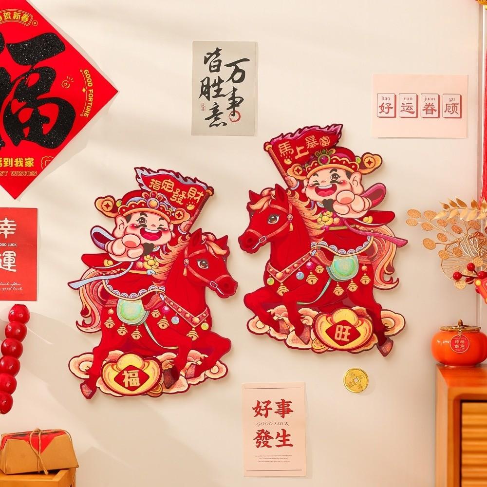 1 Pair Chinese Style New Year Door Sticker Flocking Paper Spring Festival Couplets Celebration