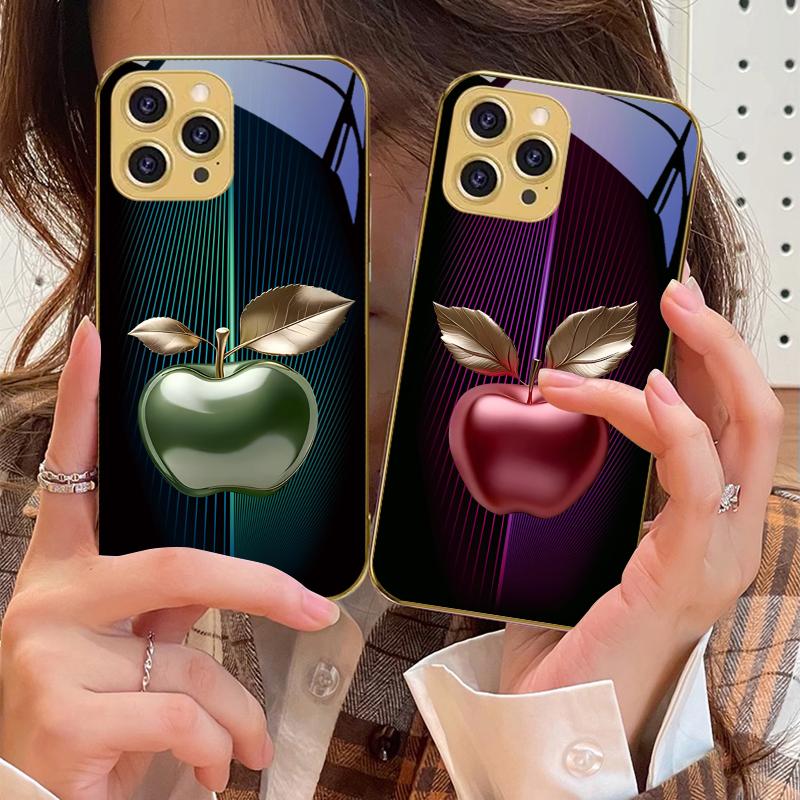 Полосатый градиентный яблочно-красный Для IPhone 16 Pro Max 15 P ro 14 13 Plus 12 Mini 11Pro Max XS Max XR Золотой чехол для телефона из закаленного стекла