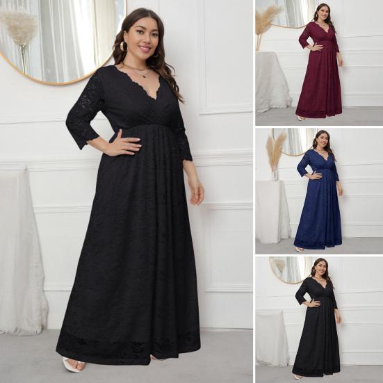 Подчеркните свой стиль с помощью этого изысканного женского платья, изготовленного из высококачественного полиэстера и спандекса.. Кружевное платье больших размеров выполнено из смеси шифона и вышитой ткани, что обеспечивает ощущение комфорта и легкости..