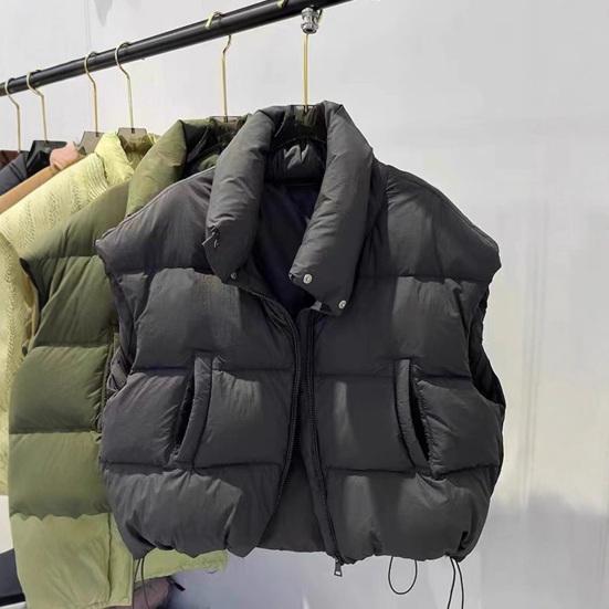 Женский пуховый жилет со стойкой воротником, без рукавов, на молнии, зимняя жилетка с карманами, однотонная, повседневная, свободного кроя, короткая куртка