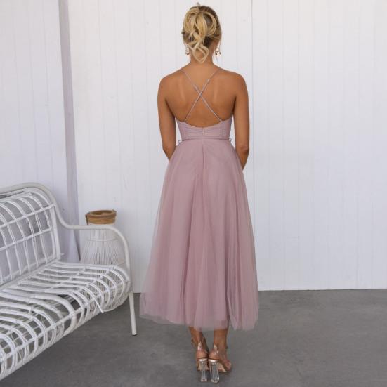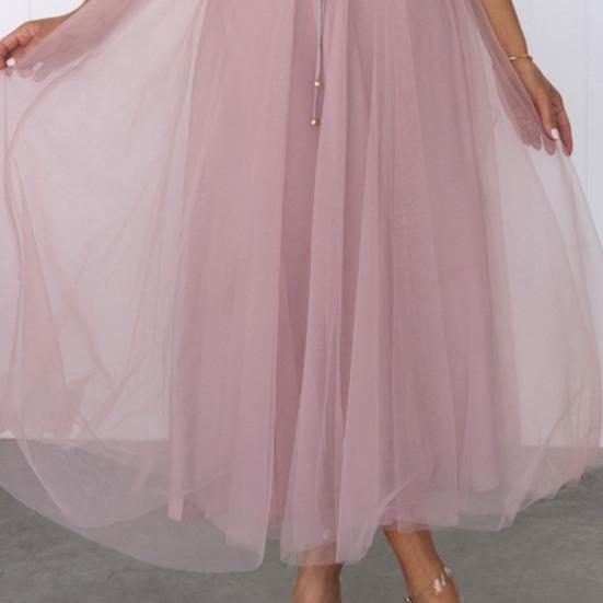 Это элегантное женское платье изготовлено из высококачественного полиэфирного волокна, обеспечивающего мягкость и комфорт.. Дизайн подола из сетки добавляет нотку красоты и изысканности общему образу. Идеально подходит для различных случаев, таких как повседневная носка, банкеты, вечеринки, танцы, выступления и свадьбы..
