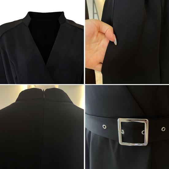 Классический V-образный вырез и дизайн талии: Подчеркните свой стиль благодаря льстящему V-образному вырезу, который удлиняет шею, и поясу с высокой талией, который акцентирует вашу стройную талию.. Этот дизайн подчеркивает ваш силуэт в целом, излучая элегантность и изысканность без особых усилий.