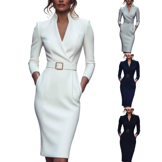 Передовой крой обеспечивает облегающую посадку, которая подчеркивает ваш силуэт, демонстрируя вашу элегантность.. Практичные боковые карманы добавляют функциональности этому шикарному платью, делая его идеальным для повседневной носки или офисного наряда.. Универсальный чисто белый цвет позволяет вам без труда сочетать его с каблуками, аксессуарами или верхней одеждой для различных случаев, таких как работа, свадьбы или ужины.. Примите вневременной стиль и изящество с этим незаменимым предметом гардероба.