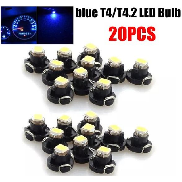 20Pcs Blue Car T4.2 T4 Led Wide Angle Light For trument Dash Panel Gauge 10mm