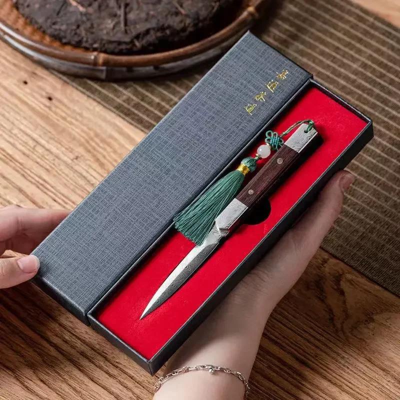 Чайный нож дзен, чайная игла ручной работы, черный сандал, дамасский узор, стальной чайный нож Пуэр, аксессуары для чайного сервиза