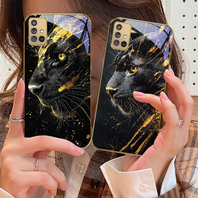 Спокойная черная пантера Для Samsung A 01 52S A04 A05S A10 A12 A13 22 23 24 36 42 M02 Note 10 20Ultra 8 9 Золотой стеклянный чехол для телефона