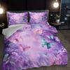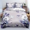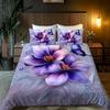 Пододеяльник с узором из фиолетовых цветов в стиле легкой роскоши, размер Queen King, 3D-печать, мягкое и удобное постельное белье, комплект из 3 предметов