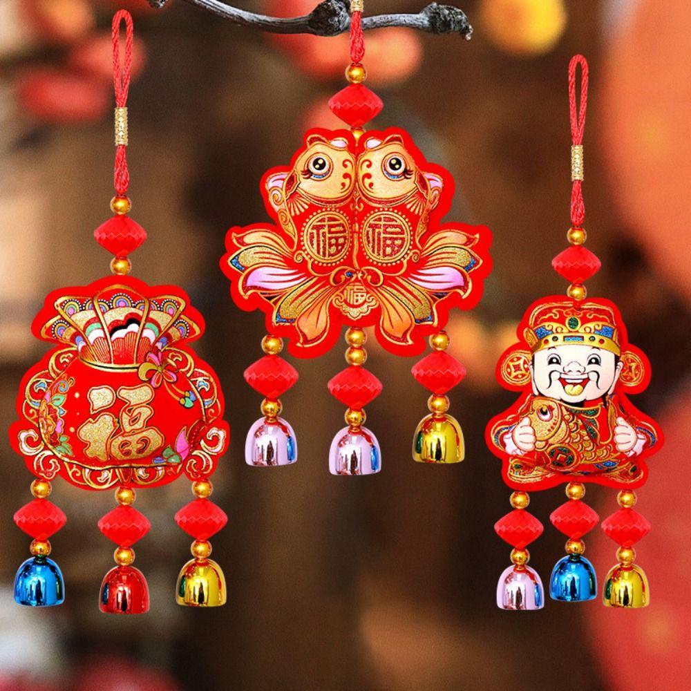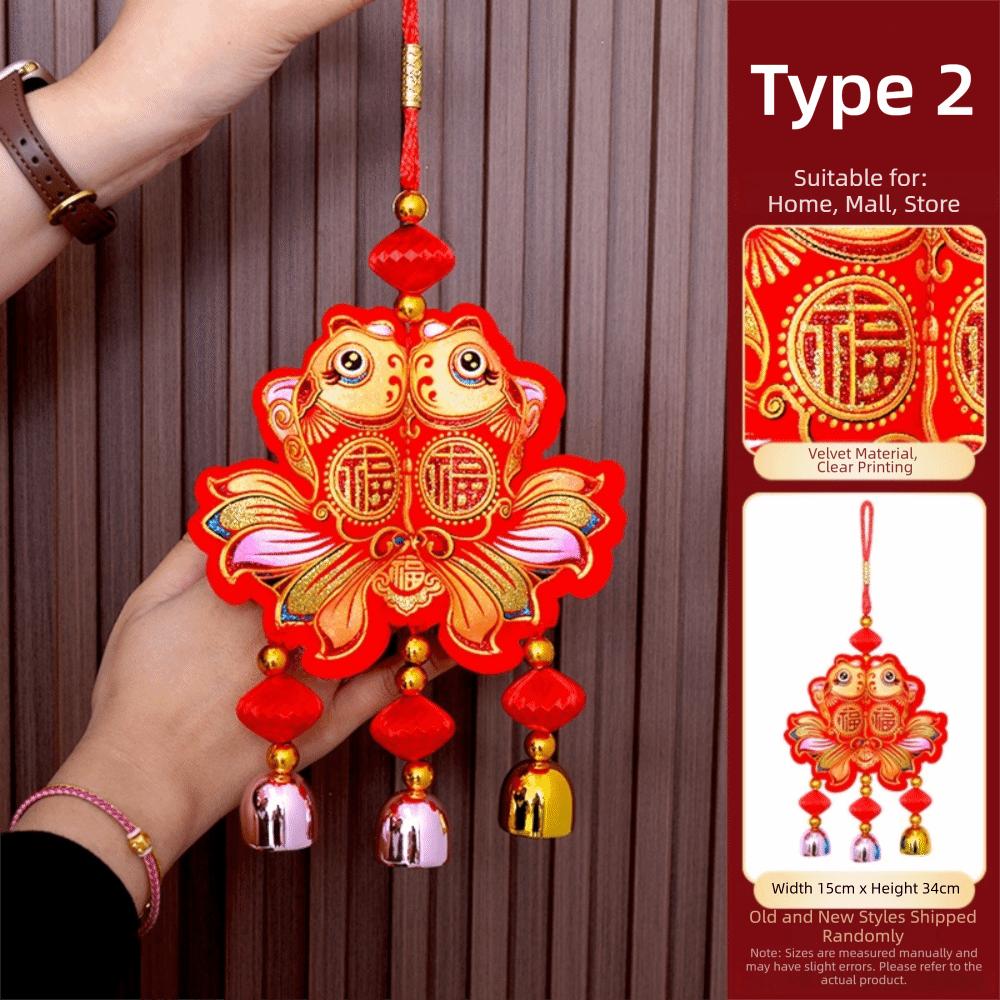 Flocking Lucky Bag Pendant Bell Tassels Spring Festival Pendants Door Window Wall Decor