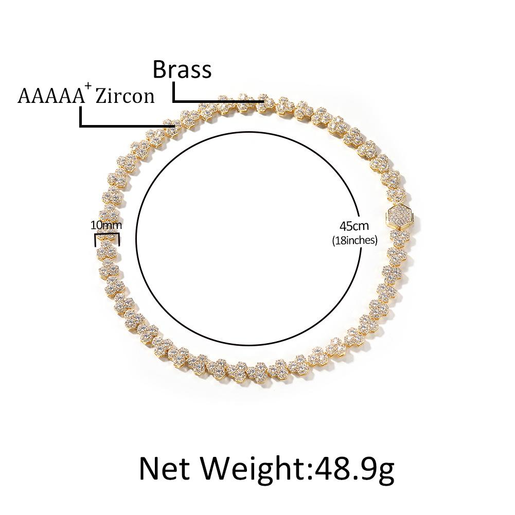 Hip Hop Honeycomb Tennis Chain Necklace Silver Copper Zircon Men's Necklace Jewelry
