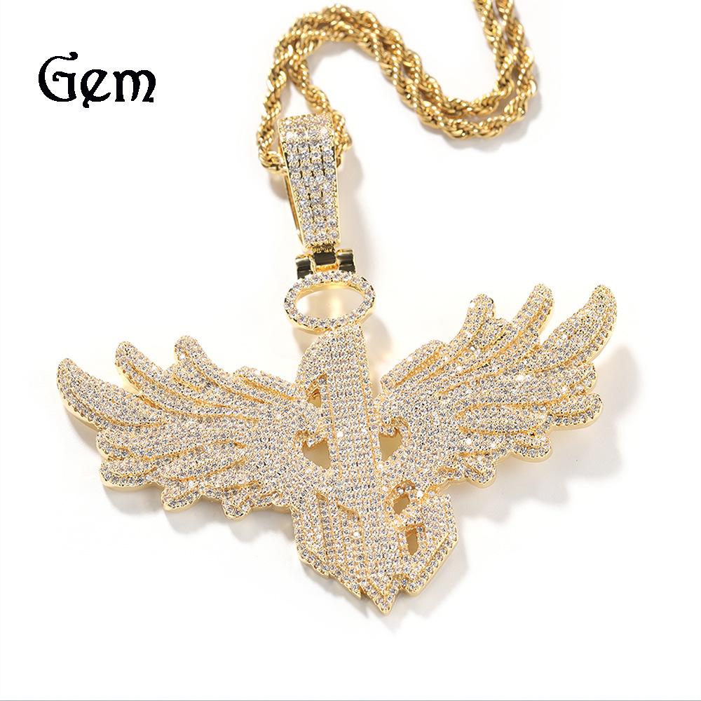 Gu Meng hip-hop digital 1 big wings pendant male personality cool copper inlaid zircon street necklace tide — купить товар онлайн с бесплатной доставкой по всему миру!