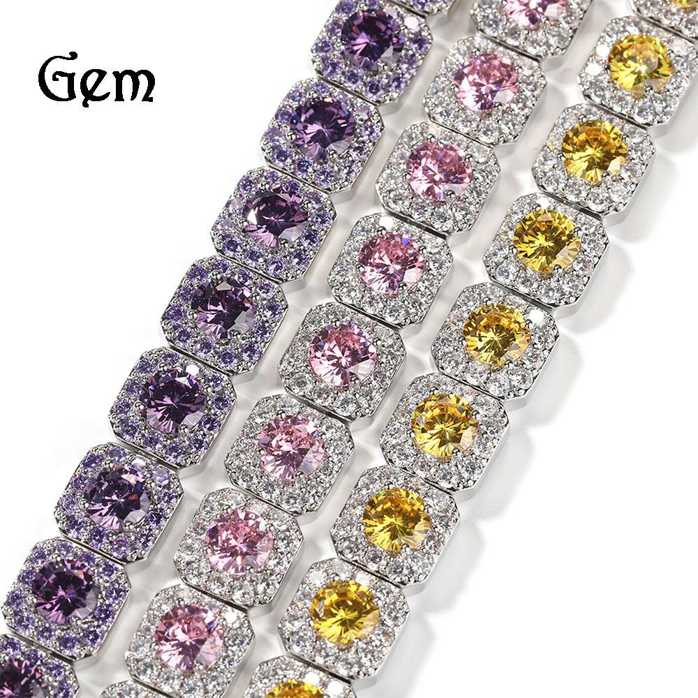 Hip-hop bracelet personalized trendy brand copper inlaid zircon color 12MM rock sugar flip buckle bracelet, same for men and women — купить товар онлайн с бесплатной доставкой по всему миру!