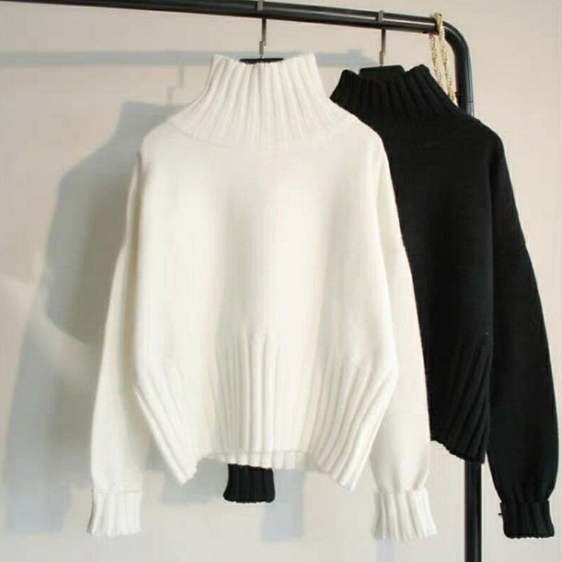 Женский свитер Зимний Утепленный Пуловер Теплый Вязаный Эластичный С Длинным Рукавом Оверсайз Водолазка Джемпер Свитер Топы