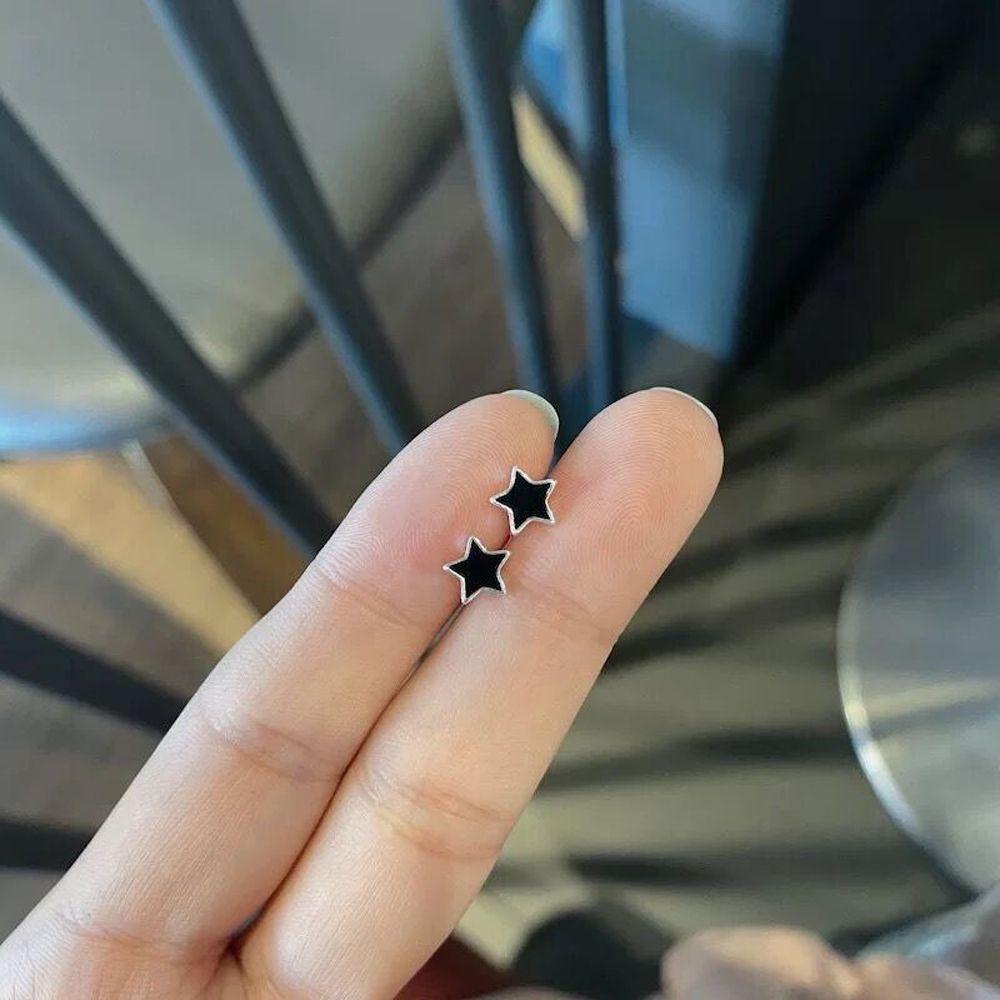 Handsome Cool Black Star Korean Style Ear Stud Dripping Oil Fashion Jewelry Female Heart Earrings