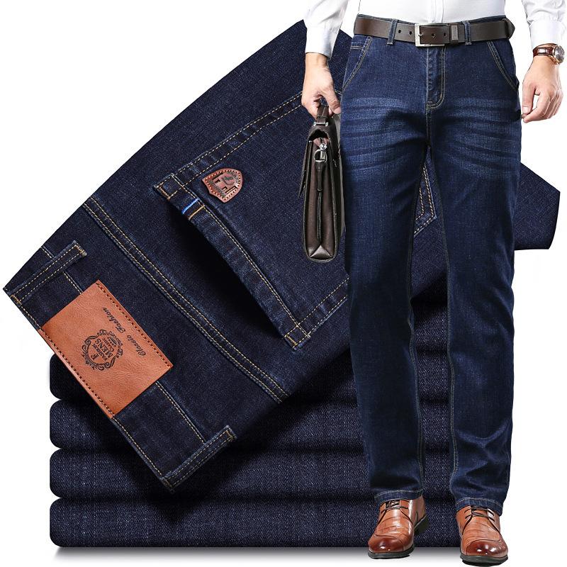 Стрейч Прямые Джинсовые Повседневные Брюки для Мужчин Не Мнущиеся Деловые Брюки для Джентльменов Среднего Возраста