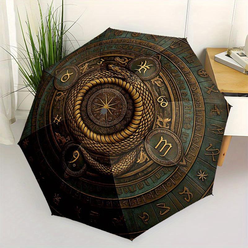 Золотой Змей Колесо Зодиака: Мистический Астрологический Декоративный Зонт, Портативный Компактный 3-Складной Зонт для Мужчин и Женщин R159