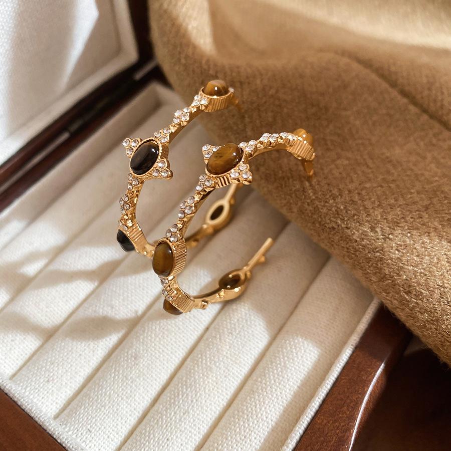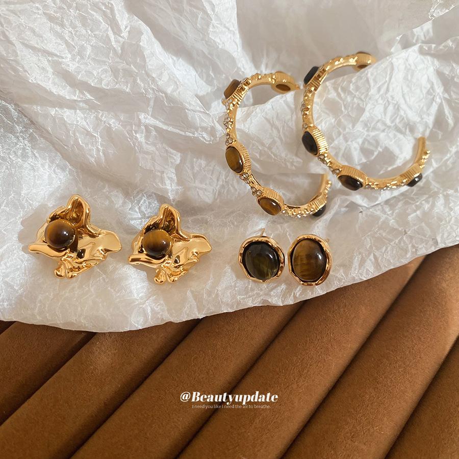 Серьги-пусеты геометрической формы плиссе из камня тигровый глаз с серебряной иглой, серьги с темпераментом в стиле ретро Майяр, серьги персонализированные универсальные