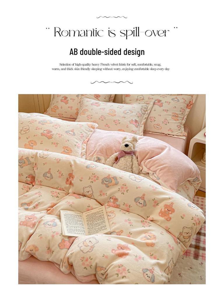 Женский плюшевый бархатный флисовый постельный набор: Фланелевый пододеяльник и простыни