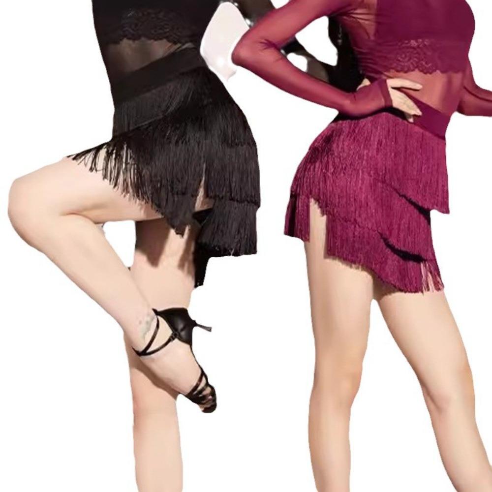 Three-Layer Ballroom Dance Skirt Tassel Rumba Dance Skirt Fashion Performance Costume for Women