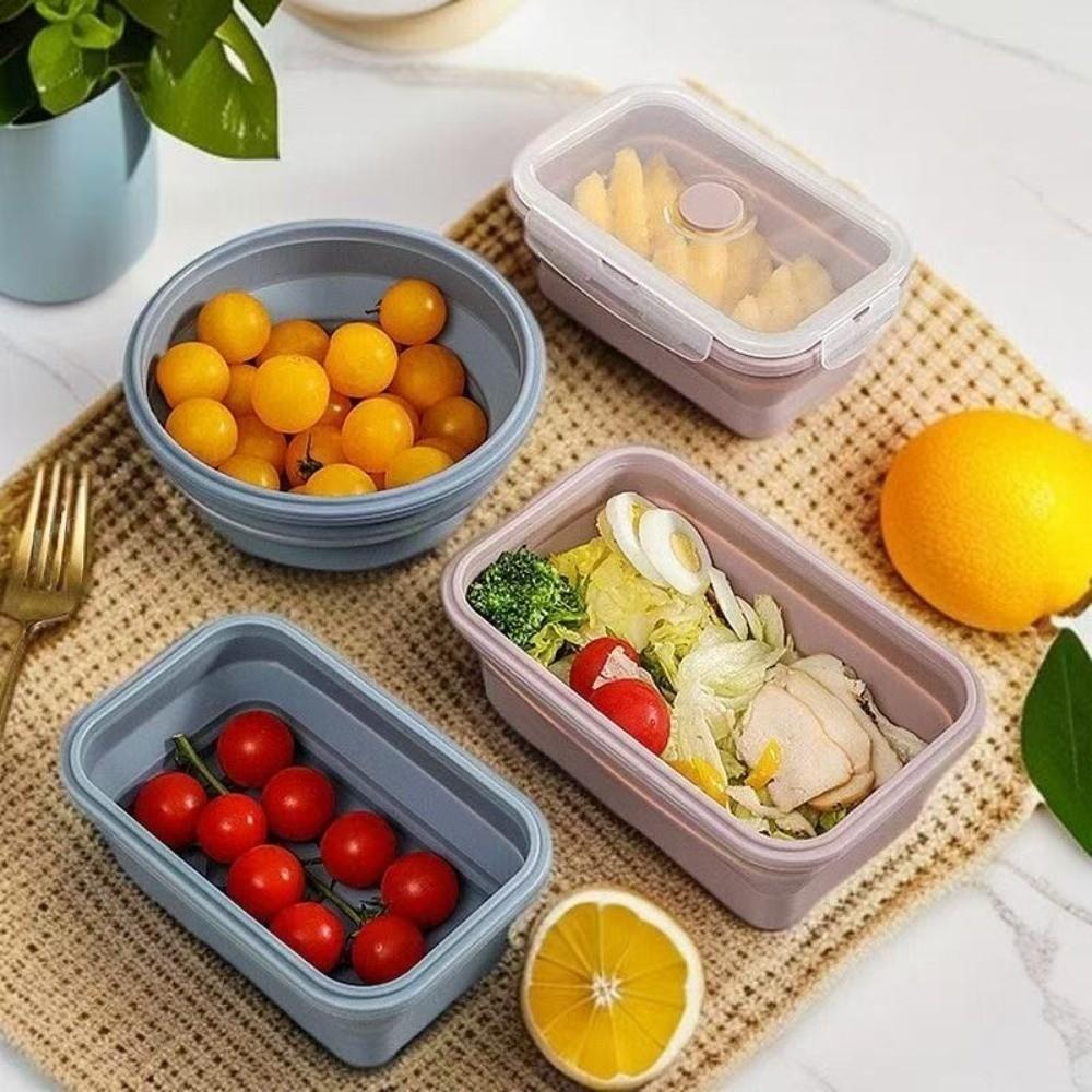4pcs Large Capacity Silicone Lunch Box Rectangular Food Storage Container Fresh Keeping Box Adult