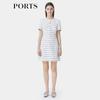 PORTS Women's White & Black Striped Short Sleeve Midi Dress