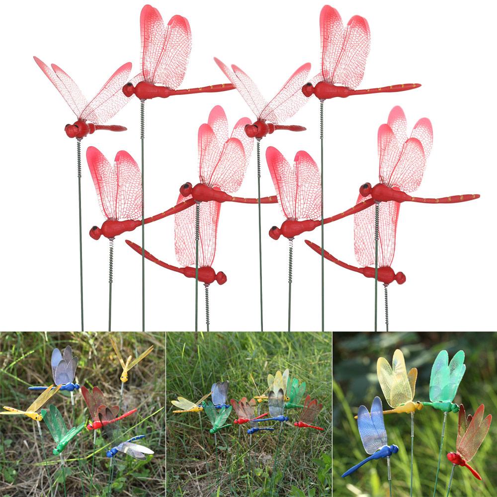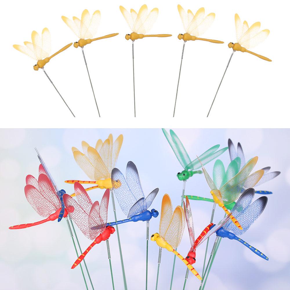 5/10PCS Handicraft Garden Decor Yard Artificial Dragonfly Simulation Butterfly With Stem Thin Stick