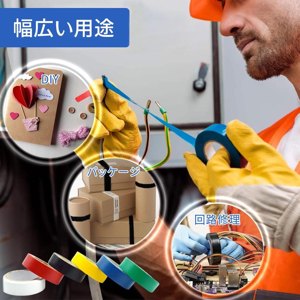 Изолента виниловая, 6 цветов, 6,3 дюйма (16 мм x 10 м), электрический