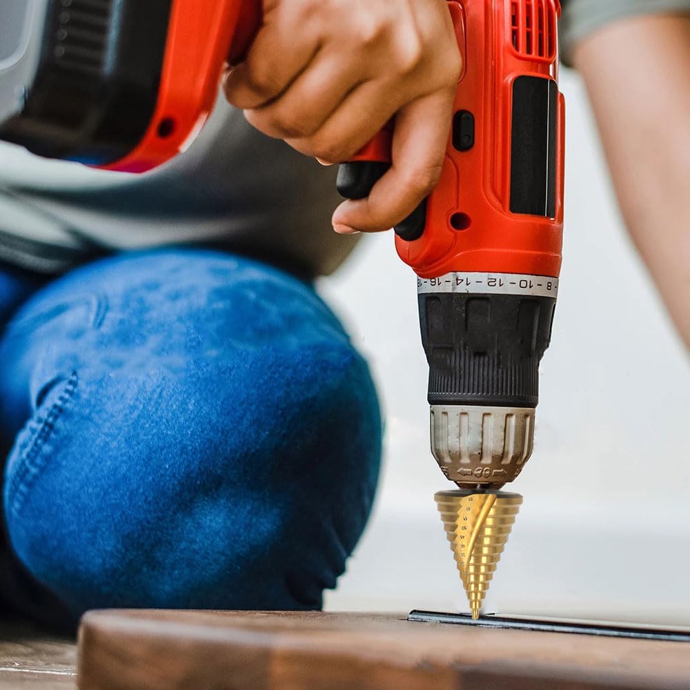 【More Detailed Design】Each step drill is engraved with a millimeter level of accuracy, which improve your work accuracy. Hexagonal shaft double groove design makes the combination of step drill and electric drill more tight