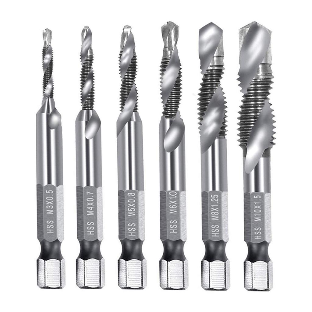 Kimlonton Drill Tap, Tap Drill Set, Spiral Tap, HSS Steel, Hexagonal Shaft, Multi-functional Integrated