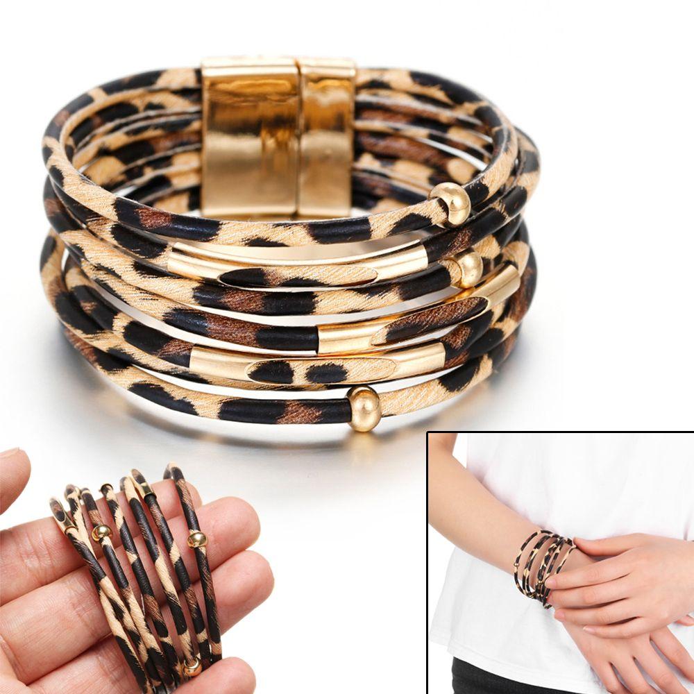 Jewelry Women Leopard Leather Bangle Wide Wristband Bracelets & Bangles Magnetic Clasp Bracelet