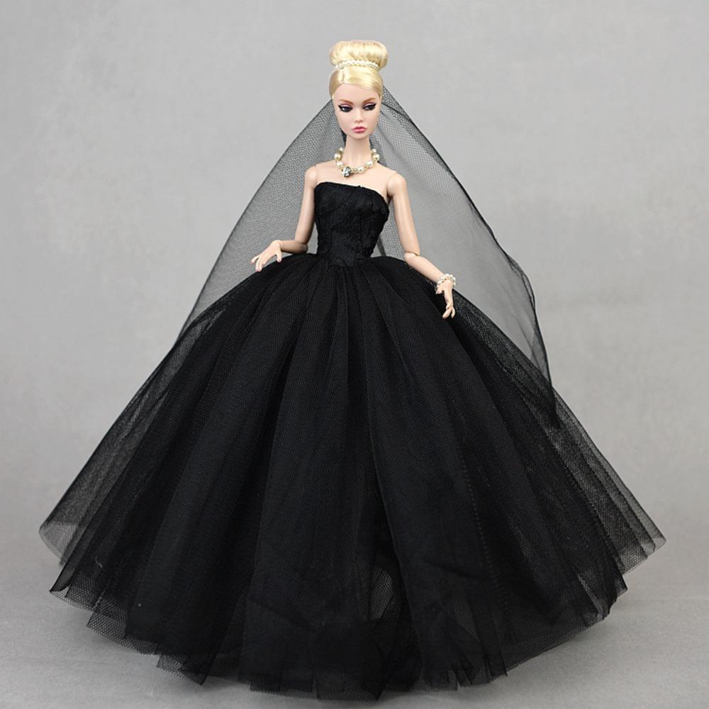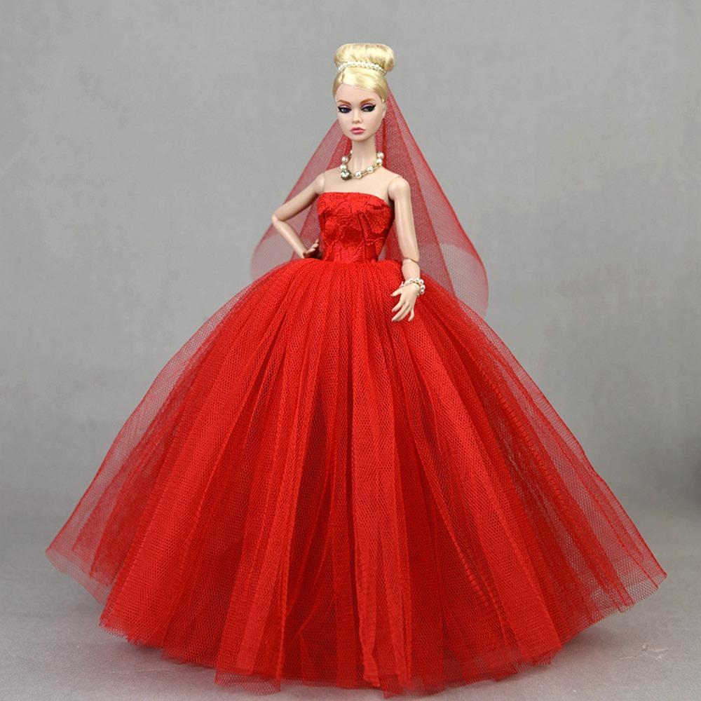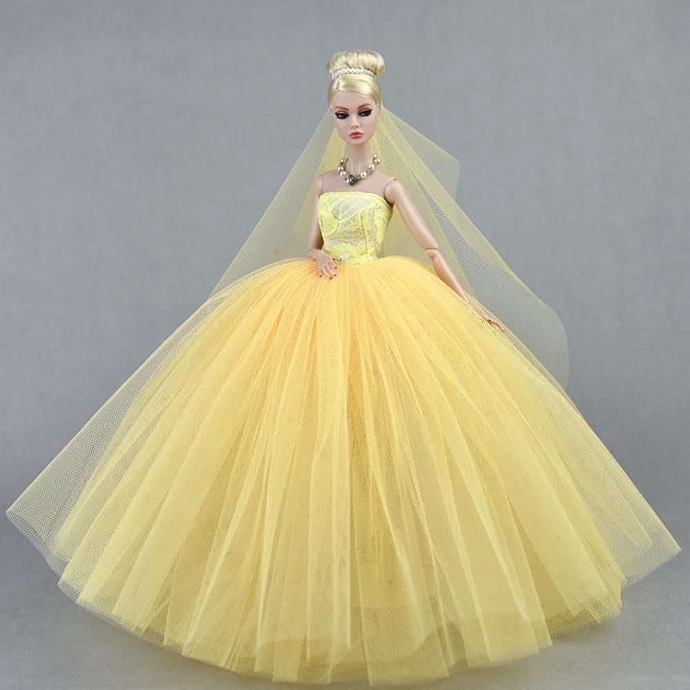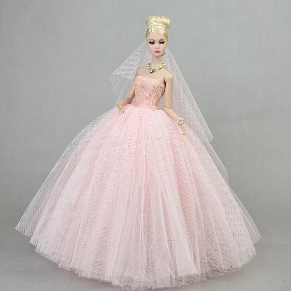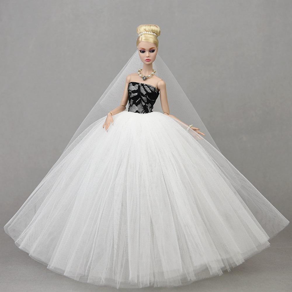 With Veil Doll Wedding Dress Solid Color Doll Bridal Clothes Doll Dress Costume 1/6 BJD Doll