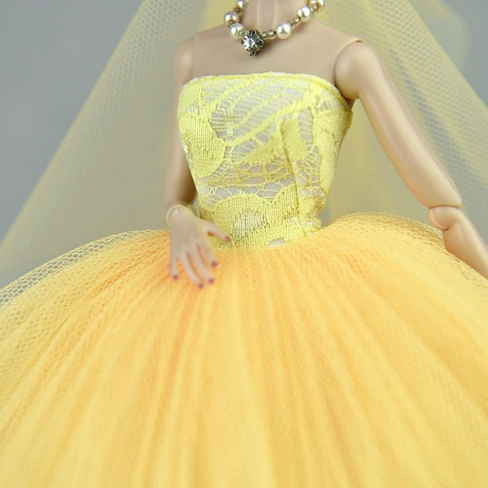 Solid Color Doll Wedding Dress With Veil Doll Dress Clothes Doll Bridal Clothes 1/6 BJD Doll