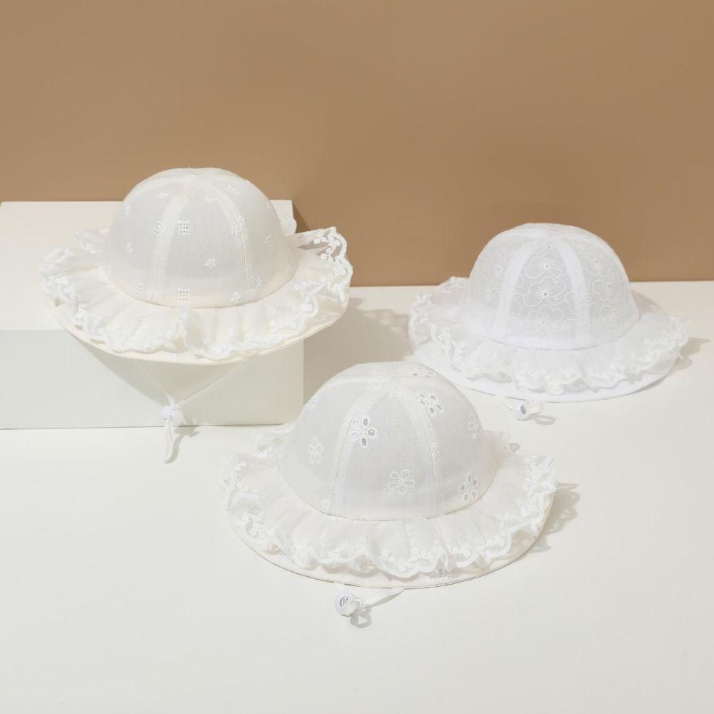 Детская панамка для принцессы Защита от солнца Детская рыбацкая шляпа Модная белая кружевная шляпа-ведро Пляжная