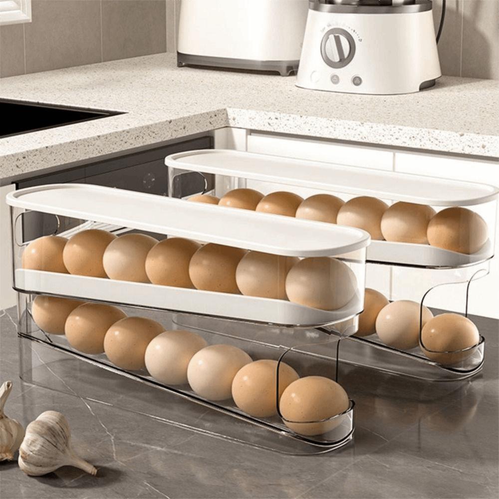 2Pcs Stackable Auto Rolling Egg Organizer Anti-fall Slide Style Egg Storage Box Refrigerator