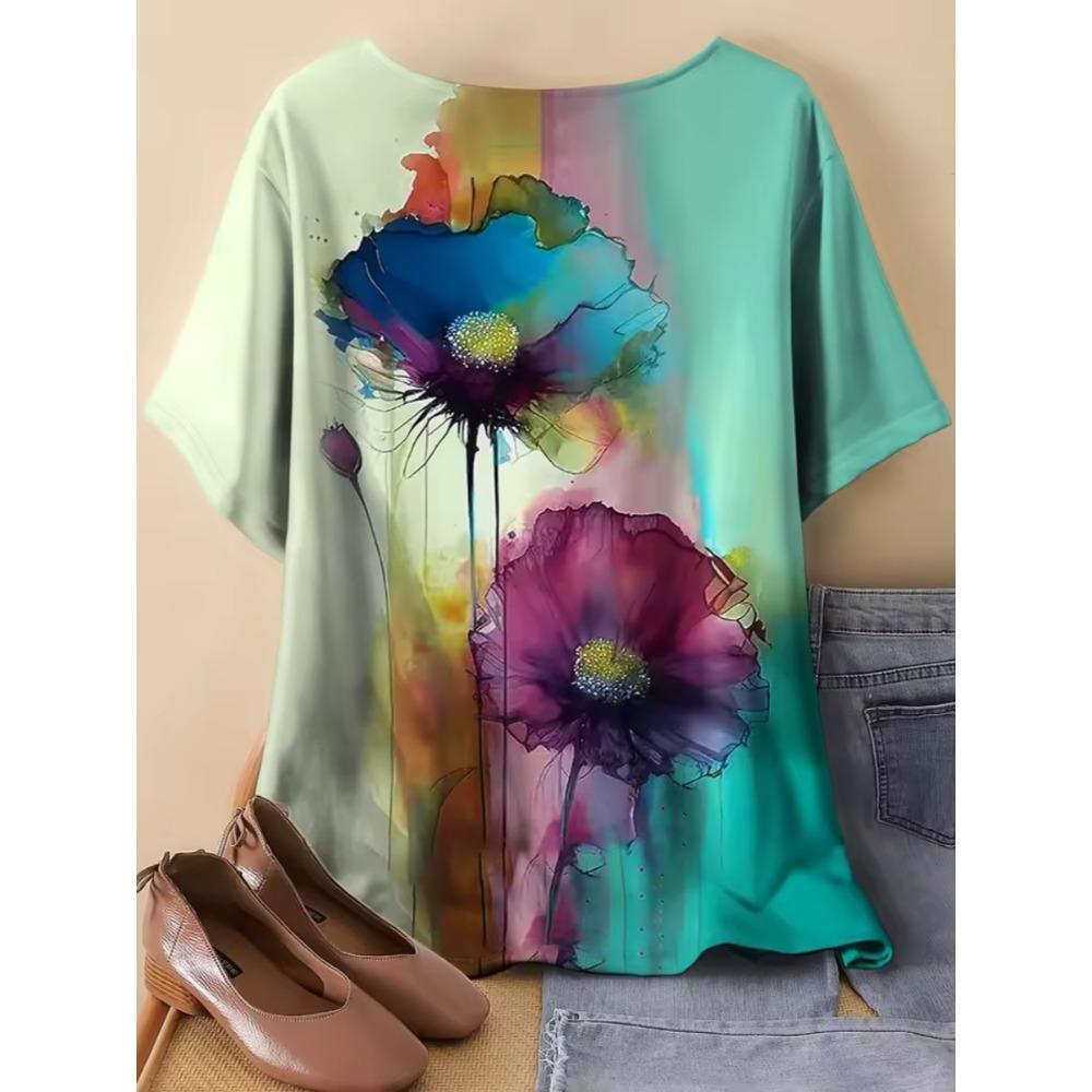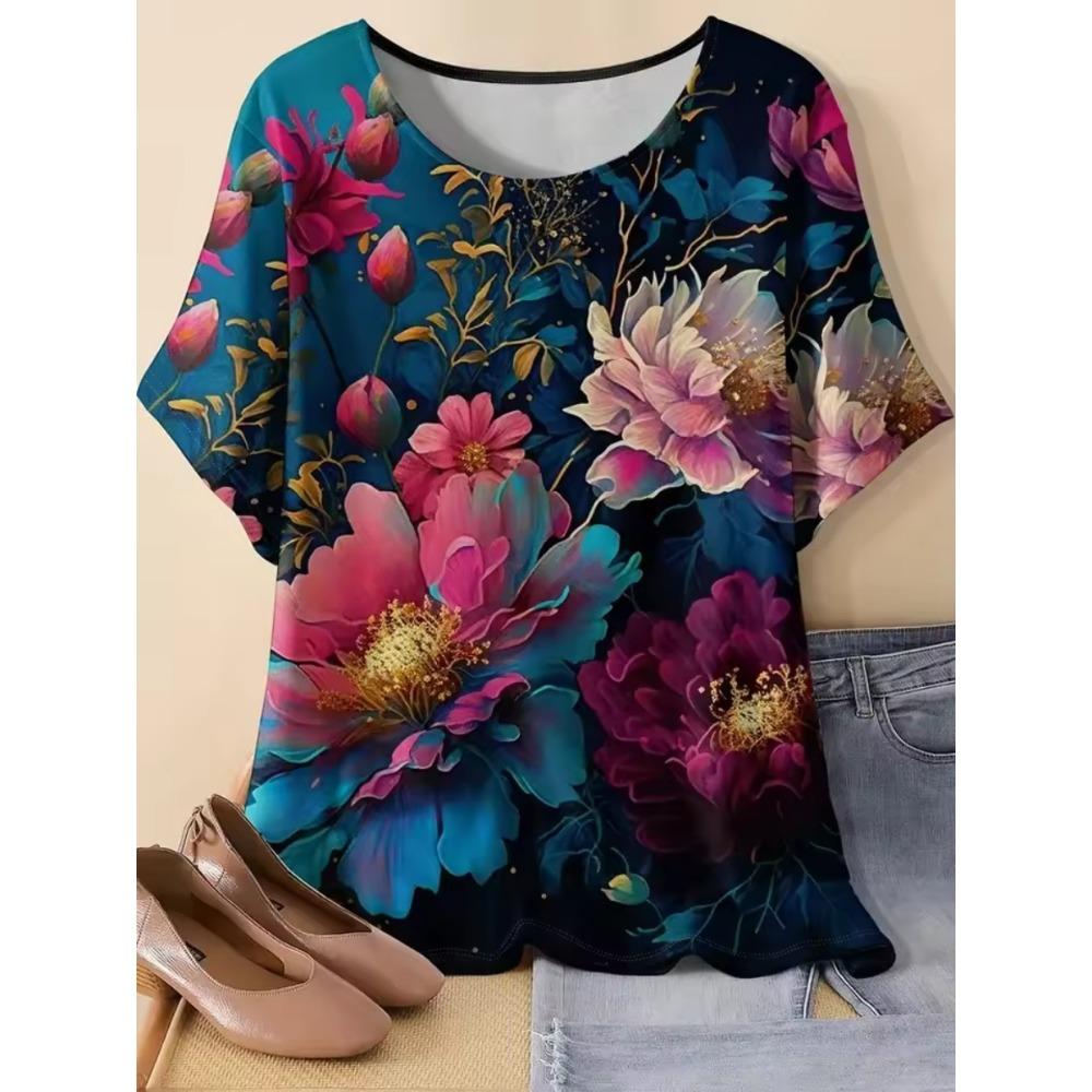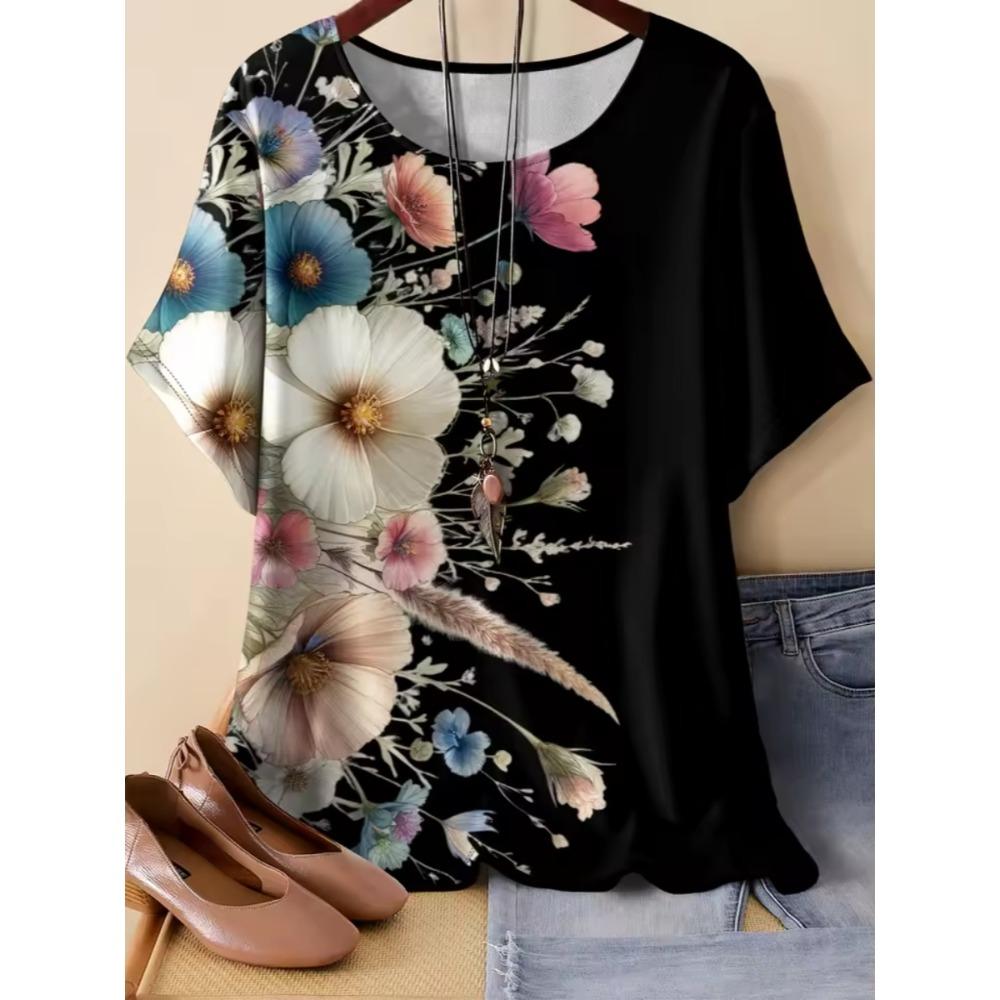 Женская футболка с цветочным узором и животными, повседневная модная удобная футболка с коротким рукавом оверсайз с круглым вырезом