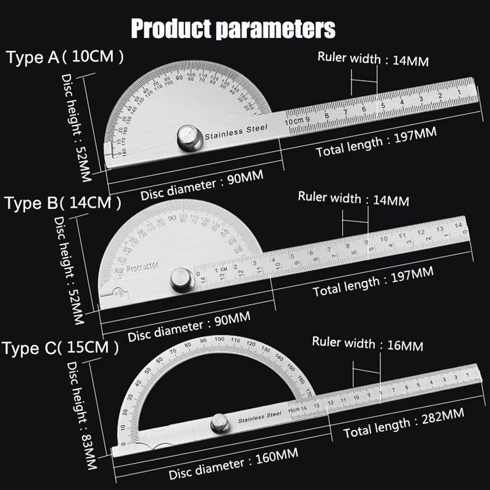 Ruler Stainless Steel Caliper Adjustable Protractor Protractor Angle Ruler 180 Degree Protractor