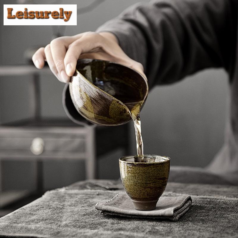 200ml Handmade Coarse Pottery Tea Pitcher Japanese Powder Yin Boat Tea Divider Cha Hai Justice Cup Kung Fu Teaware Supplies Gift