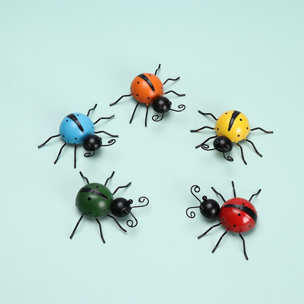 Backyard Wall Sculptures Statues Cute Rustic Metal Ladybugs 3D Wall Art Garden Wall Decor