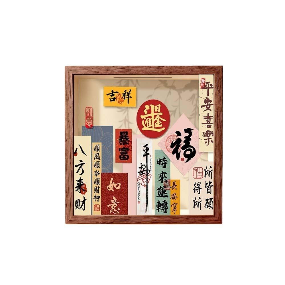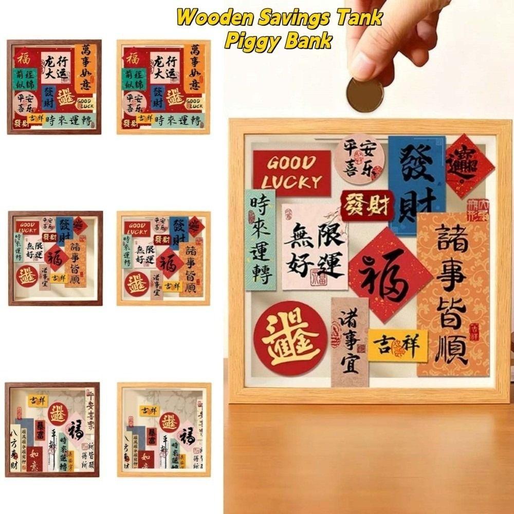 Retro Wooden Savings Tank Chinese Style Money Box Chinese Blessings Money Tank Chinese New Year