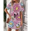 Повседневные платья женские с коротким рукавом Сарафаны 3D-печать Модные платья больших размеров Мини-платья Халаты