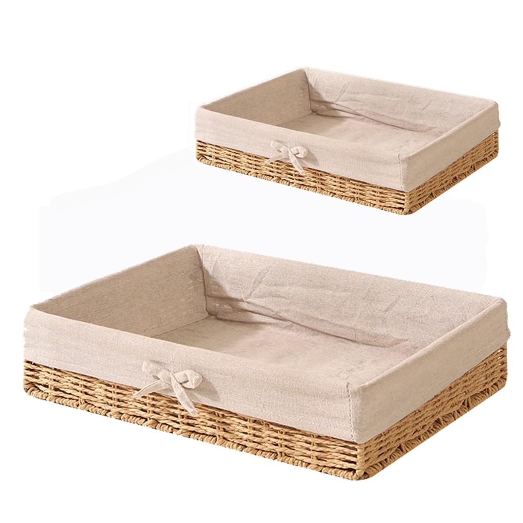 Shallow Rattan Storage Basket for Tabletop Storage, Washable with Inner Lining, Perfect for Snacks, Documents, Fruits, and Sundries, Bread Basket, Pastoral Style, Beige