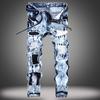 Мужские модные плиссированные джинсы, рваные, с множеством карманов, прямые мужские брюки в стиле пэчворк, повседневные мужские эластичные джинсовые брюки с дырками