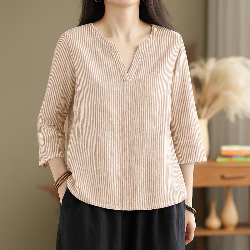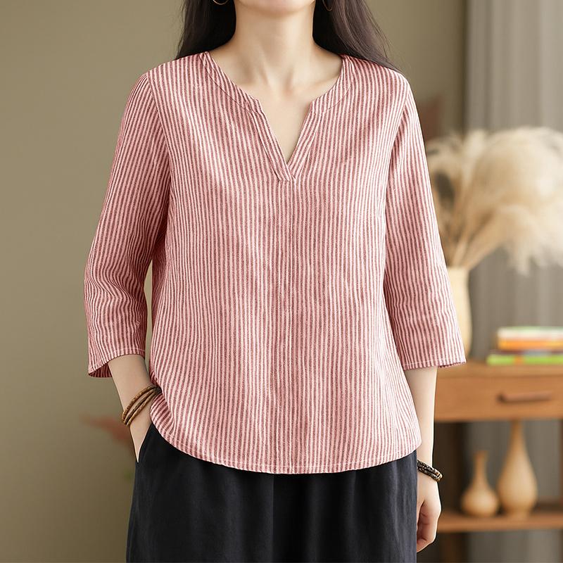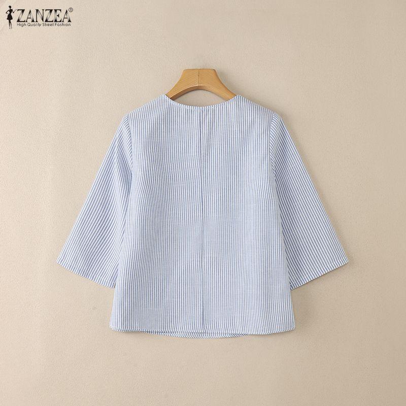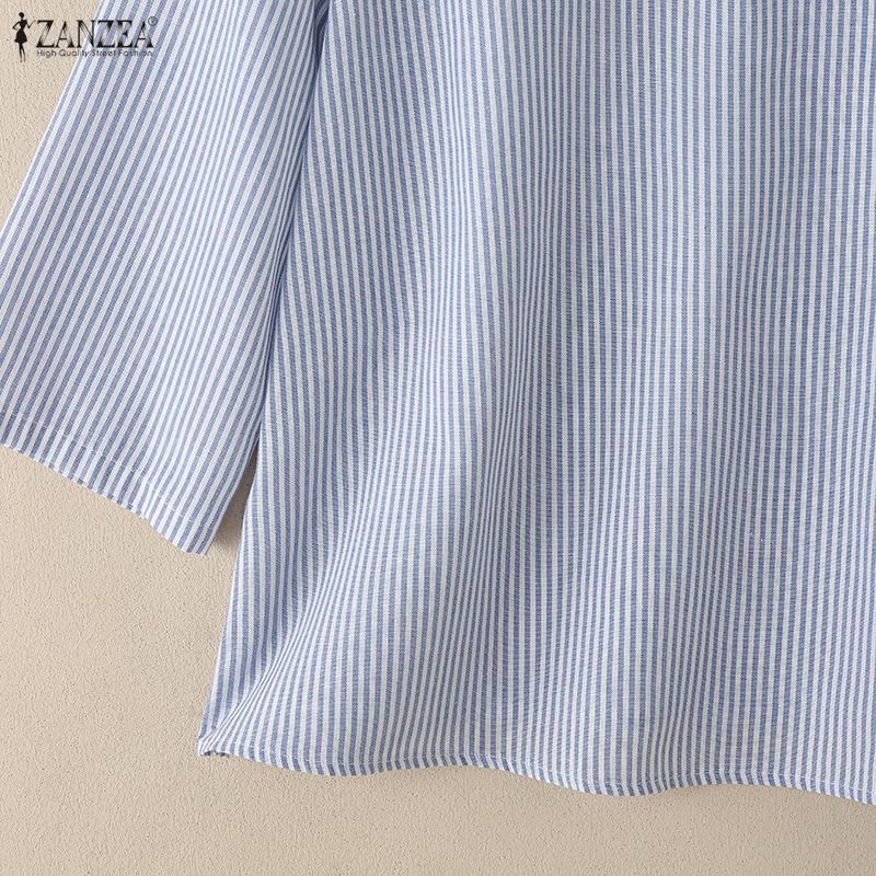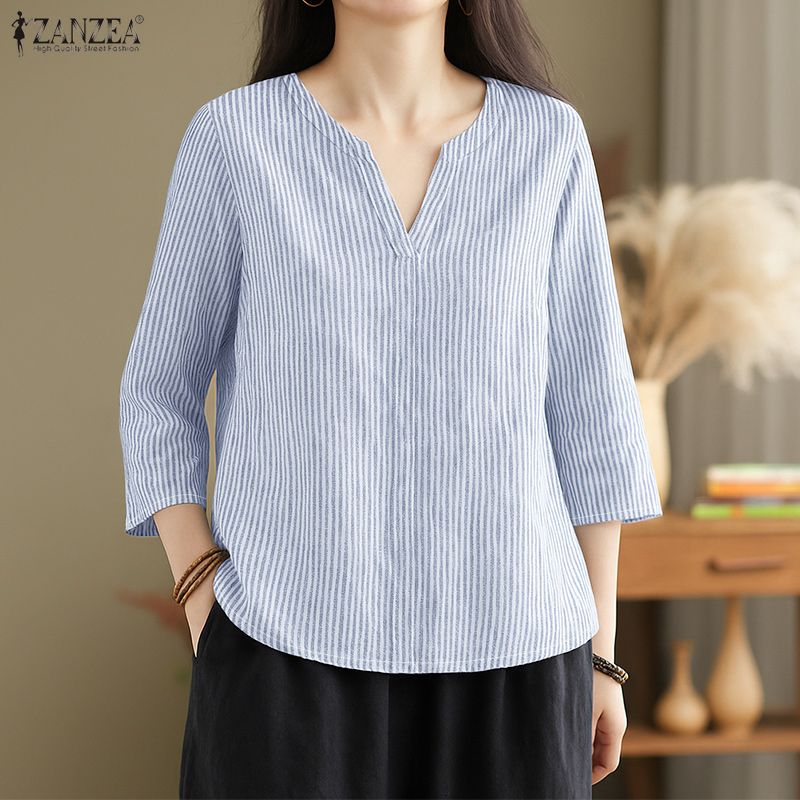 ZANZEA Женская повседневная блузка в полоску с V-образным вырезом и рукавом 3/4