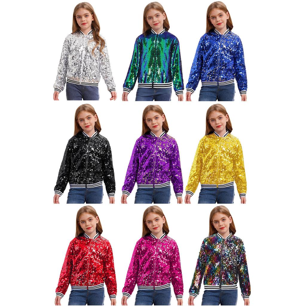Детские куртки-бомберы с блестками для девочек, блестящая летная куртка с длинными рукавами на молнии, верхняя одежда, наряды в стиле хип-хоп — купить товар онлайн с бесплатной доставкой по всему миру!