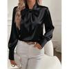 Осенняя Новая Атласная Блузка с Длинным Рукавом и Бантом Топы для Женщин