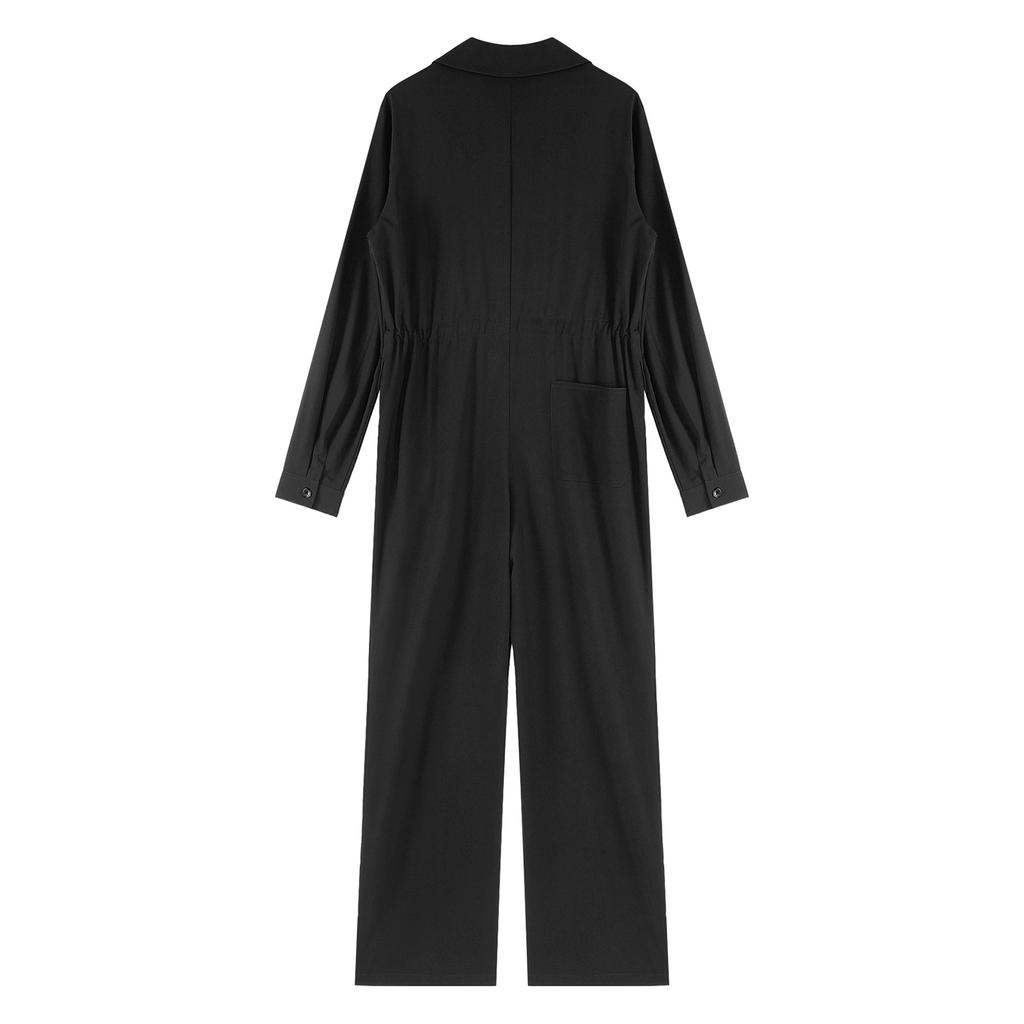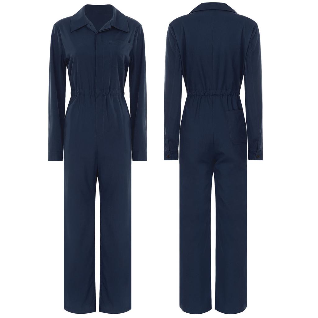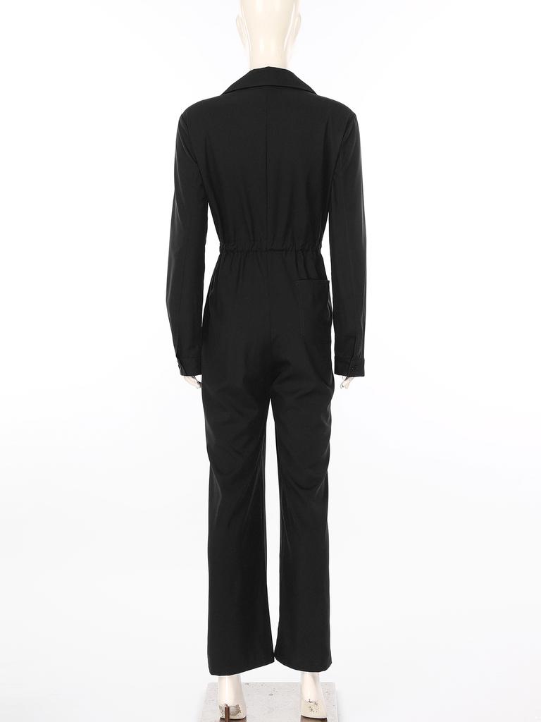 Женский модный комбинезон с пуговицами спереди, повседневный однотонный комбинезон с отложным воротником и длинными рукавами